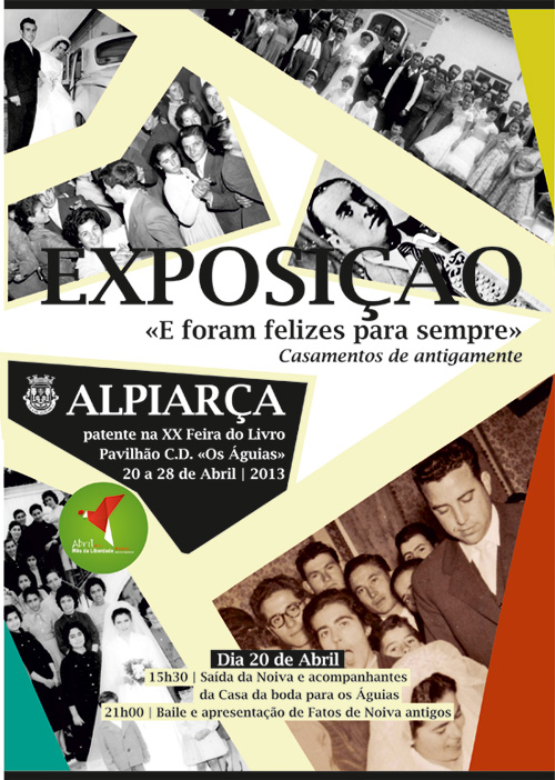 | 16h00 | Inauguração da XX Feira do Livro de Alpiarça Visita às exposições: “E foram felizes para sempre – Casamentos de antigamente” Álvaro Cunhal – “Vida, Pensamento e Luta: exemplo que se projecta na actualidade e no futuro” |