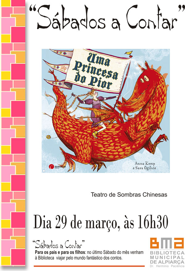 A Biblioteca Municipal de Alpiarça realiza mais uma edição de "Sábados a Contar" com a hilariante história "Uma Princesa do Pior", que será contada através de um teatro de sombras chinesas.