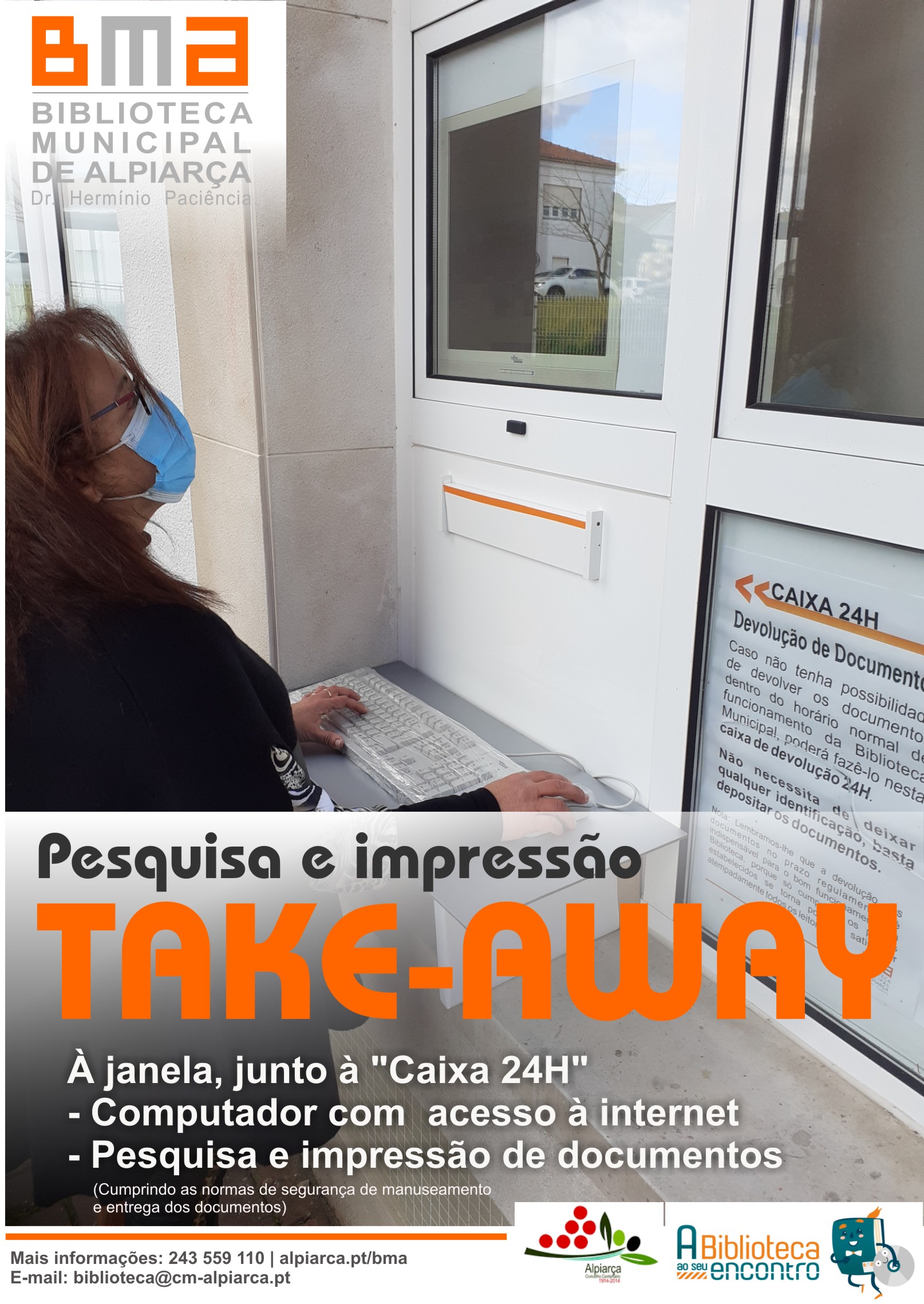Tudo isto fazendo cumprir as normas de segurança de manuseamento e entrega dos documentos, sem a invasão do espaço da Biblioteca ou com o contacto direto com os nossos utilizadores.