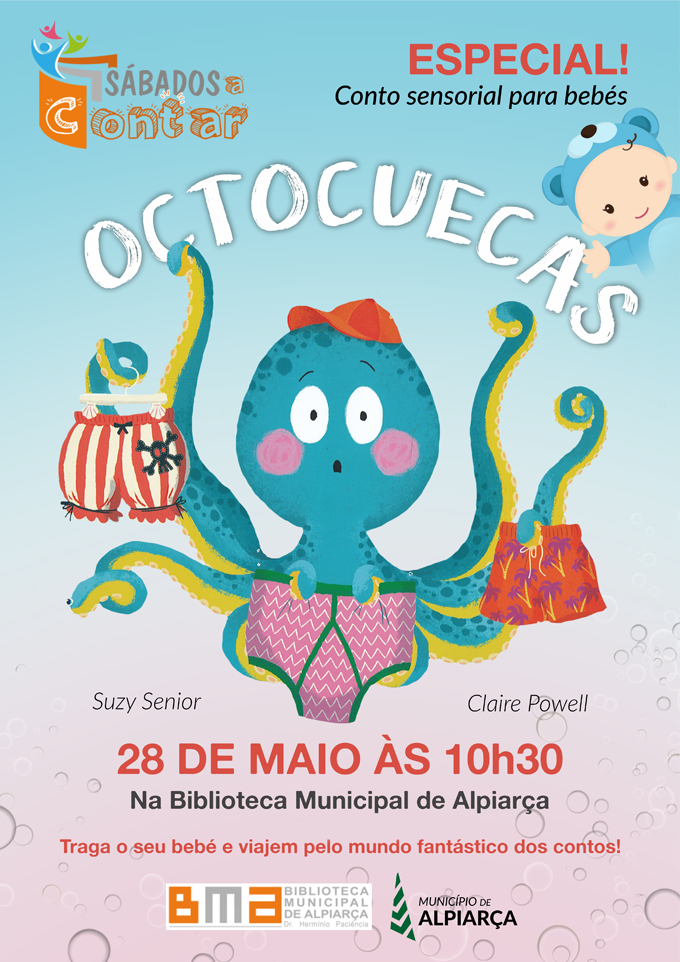 No próximo sábado, no Dia Mundial do Brincar, teremos uns "Sábados a Contar" especial, dedicado aos bebés. Do livro "Octocuecas" surgirá um conto sensorial para bebés com muitas brincadeiras e...surpresas.