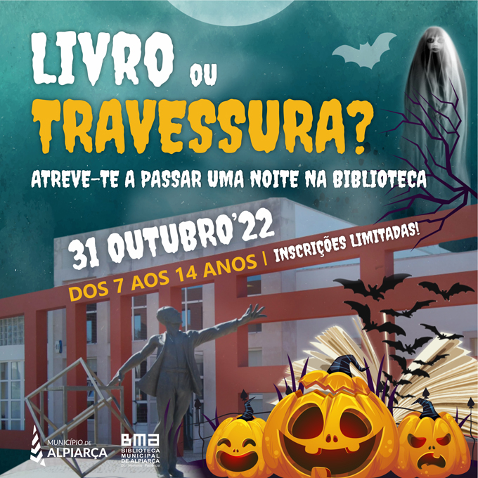 Este evento desafia as crianças (dos 7 aos 14 anos) a pernoitar e a viver uma experiência única de Halloween na Biblioteca Municipal. Música, jogos, desafios, contos e muitas surpresas arrepiantes farão parte desta noite aterrorizante.